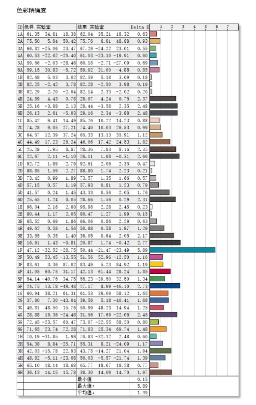 色彩测试方面,我们先将显示器恢复出厂默认设置,并工作一小时预热,然后使用SpyderX校色仪进行测试。从测试来看, AGON AG254FG电竞显示器的实测色域覆盖为95% sRGB。色彩精准度方面,在红蜘蛛的48色精准度测试中,测得此时的ΔE为1.39,精准度比较不错,能够为玩家提供准确丰富的色彩显示效果。