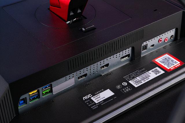 接口方面,该显示器配备了1个DP1.4接口和2个HDMI 2.0接口,可以满足玩家驳接多个设备的需要。它还配备了4个USB 3.2 Gen1下行接口,其中绿色接口为NVIDIA Reflex延迟分析检测专用接口,黄色接口则拥有快速充电功能(1.5A)。另外,它还拥有一个3.5mm耳机接口,方便玩家接入耳机使用。