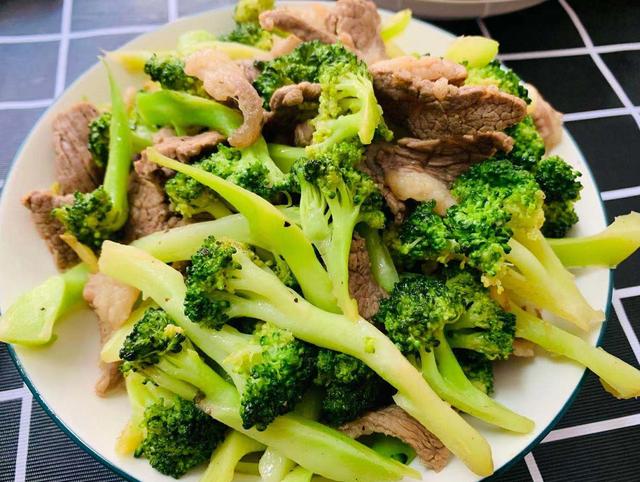 2、锅中倒入少许油,放牛肉翻炒变色,然后倒入西蓝花翻炒几下,盖子锅盖中小火焖3分钟,出锅前撒海盐、胡椒粉即可。