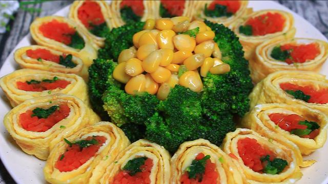主要食材:西蓝花 胡萝卜 香菜 玉米粒 鸡蛋