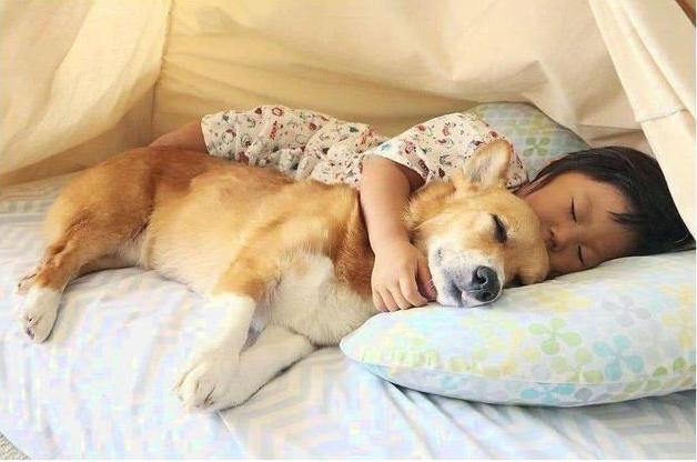 我家狗狗从小就跟我睡,十三年了,我很开心,