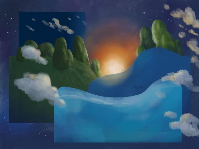 默认的壁纸有日间/夜间的变体。正如你所注意到的上面的白天的壁纸,下面是晚上的艺术作品。