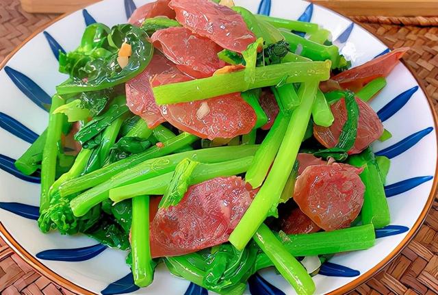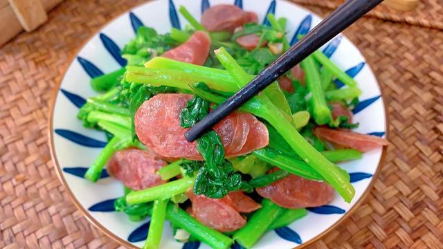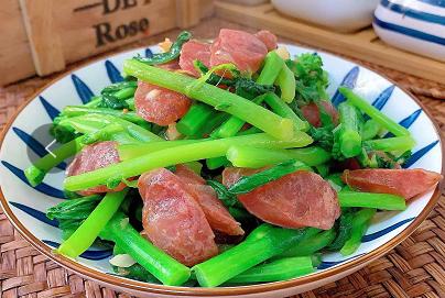 这道简单又不失美味的菜薹炒腊肠就做好了,别看简单的调味,口感真心不错,咸香适中,随着咀嚼,菜薹的清香充满口腔,再搭配上腊肠,吃起来别有一番滋味,这样做的菜薹,可比大鱼大肉受欢迎,喜欢的朋友一定要试试哦。