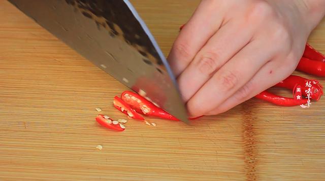 3、准备多一些大蒜,把它切成蒜片备用,小米椒斜刀切成小圈,,切好的小米椒搓揉一下,把辣椒籽取出来,这样就不辣了。