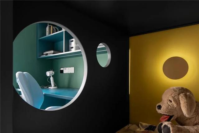 看似简单的儿童房,真的处处都有温馨的氛围,尤其是下铺空间,透过圆孔可以直接看到窗外的阳光。这样的儿童房,真的很像每个孩子都渴望和追求的“秘密基地”。