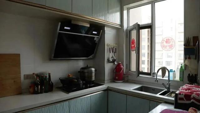 厨房装修前又小又旧,有些老式的装修风格现在已经过时了,漏风的油烟机也很乱。