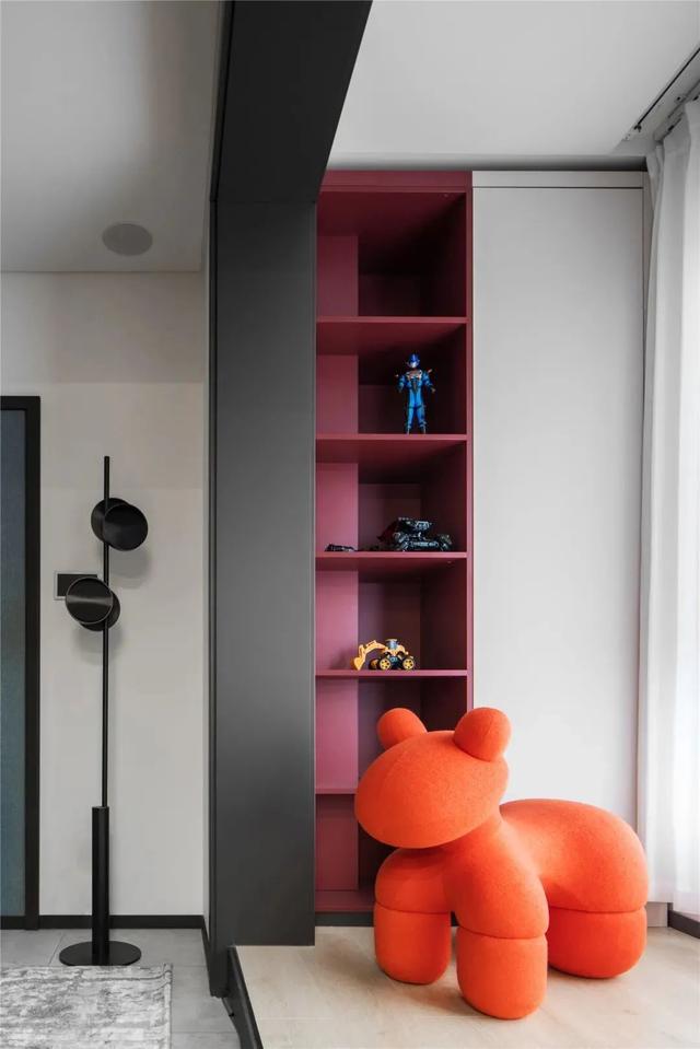 在平台的设计上,平台两侧增加了大量隐藏式和开放式的收纳空间,大大提高了这个三代同堂的家的收纳需求,家里的杂物也不用面临“无处安放”的尴尬。