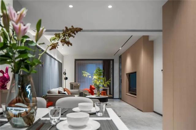 从阳台到客厅再到餐厅,整个公共活动空间以开放式布局为主,阳台的阳光和餐厅的阳光形成视觉上的呼应。