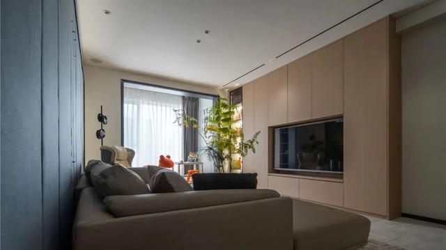 原来的客厅没有太多的储物空间。为了让这个家有更多的可能性,设计师把电视背景墙变成了超大的收纳空间,满足客厅的日常收纳。