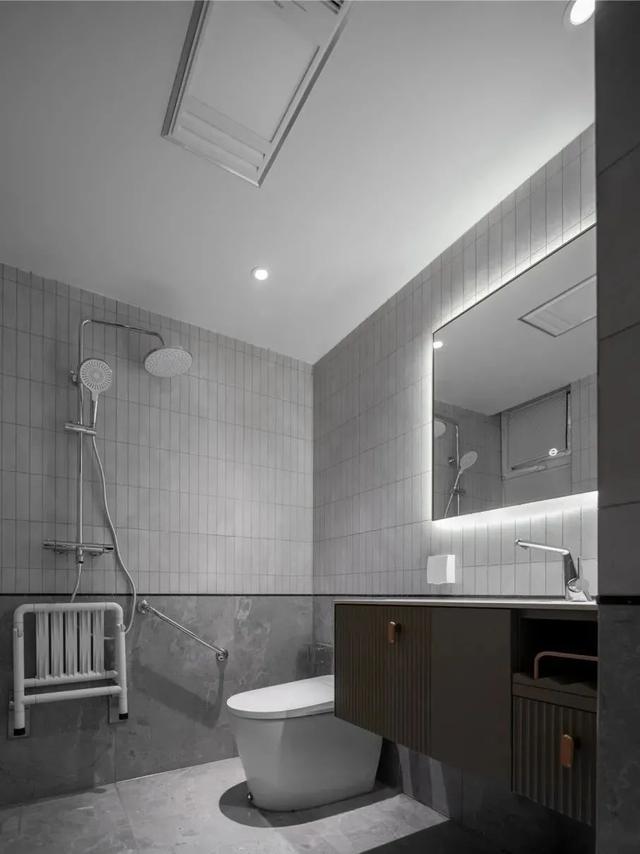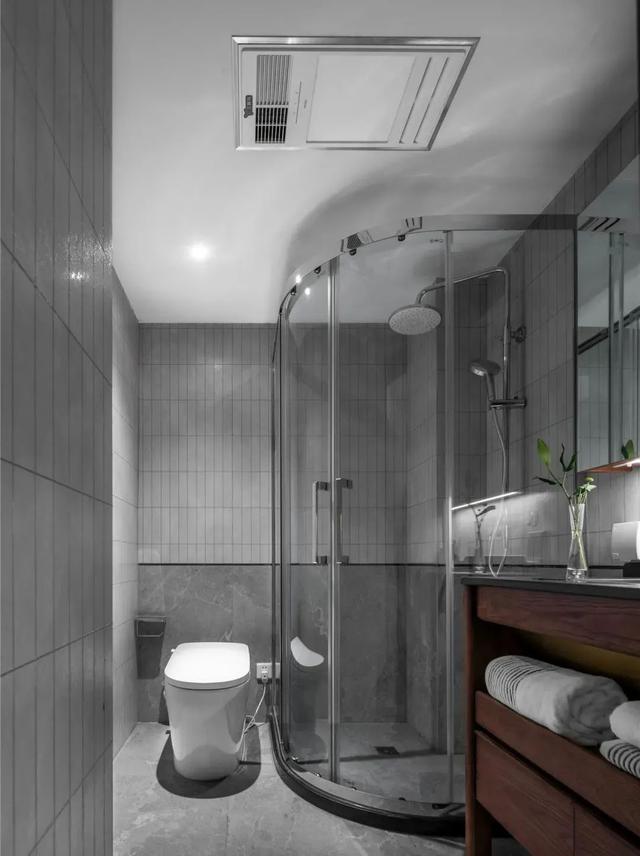 由于次要空间太小,没有进行干湿分离的设计,所以还是保持了原来的格局,只是在元素装饰上,用了灰色调,显得比较高级。