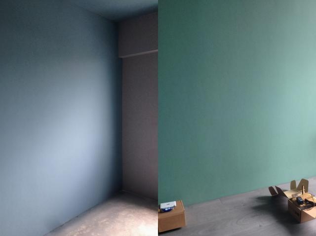 原来几乎全是白色的墙,设计师通过交流为业主墙面粉刷了淡灰+橄榄绿的配色,配以原木家具,显得优雅温馨。