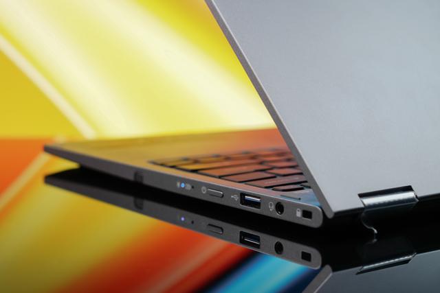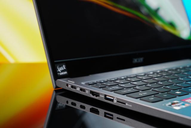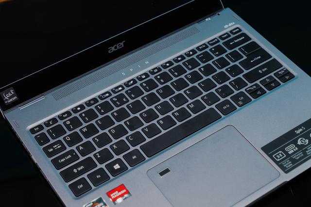 另外,翻转触控笔记本为了便于使用,电源按键基本都在侧面,机身尾部没有任何接口,接口分布在机身两侧。而Spin5在机身厚度控制得不错的情况下,依然提供了类型数量丰富的接口,有两个全功能Type-C口以及两个USB大口,日常完全够用。实际上,宏碁轻薄本在接口实用性方面的表现都挺好。