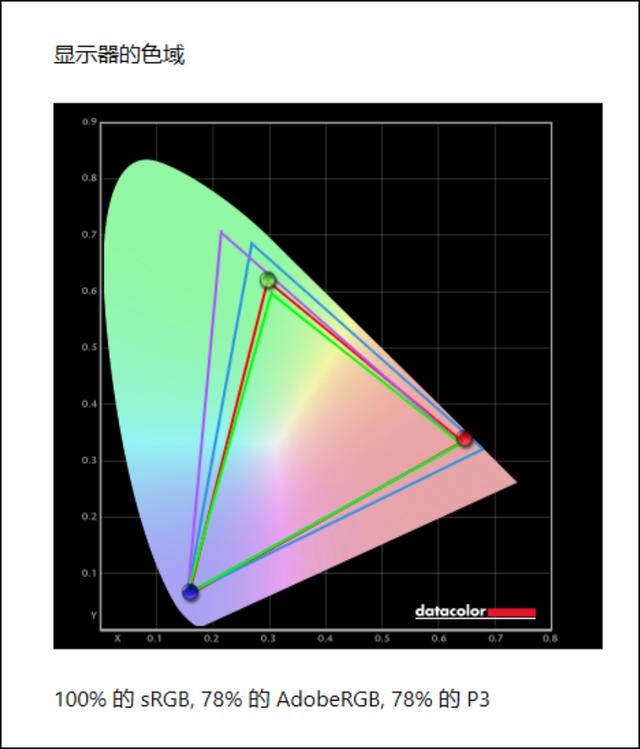 Spin5搭载的是一块13.5英寸的2256×1504分辨率IPS触控屏,有玻璃覆盖,DC调光。关于它的触控体验前面哈库拉小姐姐已经介绍过,因此这里牛叔就谈谈它的实测参数。屏幕实测色域为100%sRGB,78%P3色域,最高亮度大概336尼特。显示细腻,3:2 的比例尤为适合浏览网页、文档,可显示更多内容。