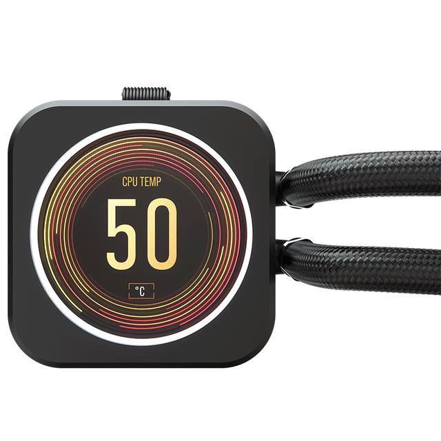 H150i ELITE LCD相较于去年推出的iCUE ELITE CAPELLIX精英版散热器,最大的区别就是其采用了全新的水冷头设计,将RGB顶盖升级为了一块2.1英寸的圆形IPS LCD显示屏,这块屏幕拥480×480的分辨率以及600cd/m2的超高亮度,高分辨率可以带来更加精细的显示效果,而高亮度则能让水冷头在“光污染”严重的机箱内部依然能保持相当高的辨识度,不至于被本就拥有亮度优势的RGB灯效盖过风采。另外,屏幕周围还配备了由24颗可独立寻址灯珠组成的RGB灯环,通过专用的CORSAIR iCUE软件独立控制屏幕显示内容与灯环的灯光效果。