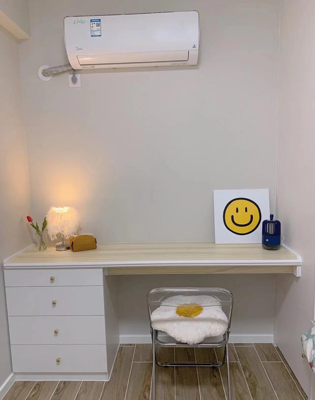 这是次卧,靠窗定制榻榻米,既满足基本的睡觉功能,又在底部和侧面做柜子增加收纳功能,非常实用。旁边定制了L型书桌,可以用来办公学习,下面的抽屉也可以用来放书,非常实用。