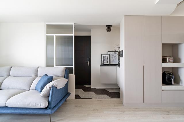 比如这种情况下,玄关柜和餐边柜都选择了优雅的奶油色灰色调,低调内敛。