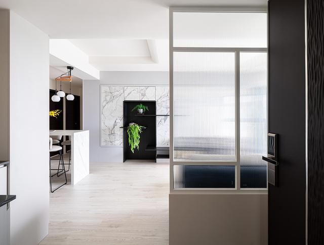 本案中,业主采用了类似格子窗的长虹玻璃造型,其特点是透光无投影,造型简洁,使家居看起来十分清爽。