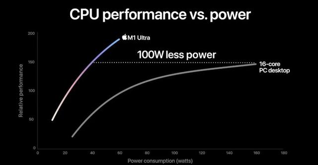 性能方面,苹果宣称M1 Ultra相比于10核心桌面CPU同等性能下功耗低65%,相比于16核心桌面CPU同等性能下功耗低100W,同等功耗下性能强90%。相比于RTX3090独立GPU在同等性能下功耗低200W。