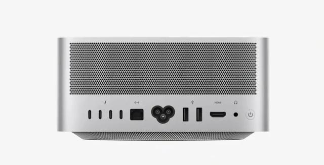 毕竟是主机,苹果为其安排了非常丰富的接口,正面为SD读卡器,两个雷电4接口,后面有4个雷电4接口、10Gb以太网、两个USB-A 端口、HDMI端口和用于高阻抗耳机的Pro音频插孔,支持Wi-Fi 6和蓝牙5。