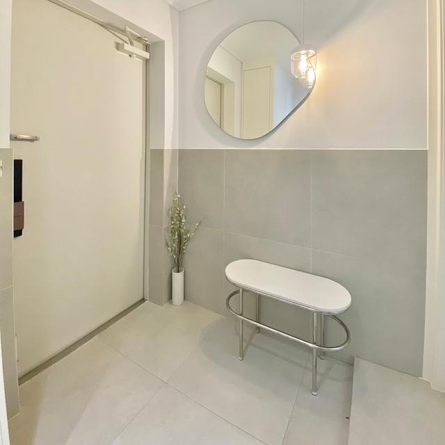 除了独立玄关设计,韩国还会做下沉式地面处理,减少灰尘带入室内。