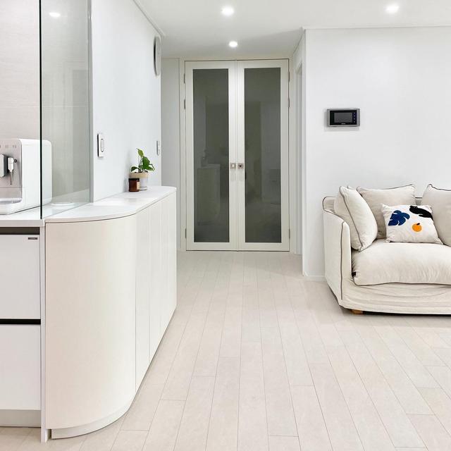 韩国的大户型通常会有独立的玄关区域,客厅和玄关之间会加一个室内门,将内外完全隔离。