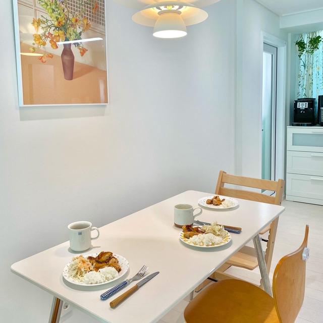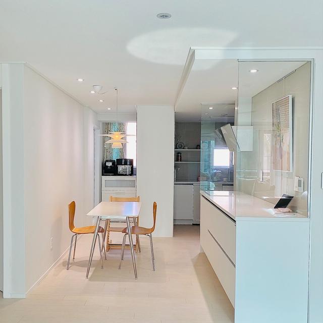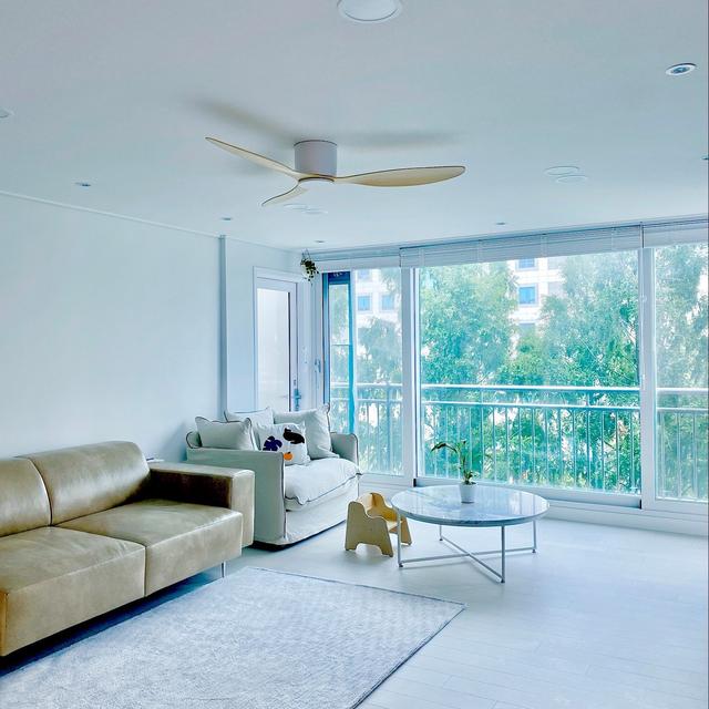 本次分享的案例的业主当初买下这套房,主要的原因也是小区中的森林景观,到了夏季的时节,窗台外像是一幅翠绿的油画。而家中的韩国太太又喜欢简单干净的白色装修,整个家在装修之后就像是美丽的风景画一般让人心生向往。