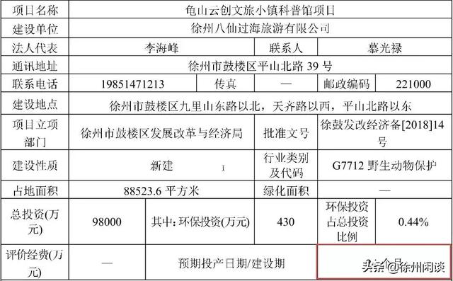 在今年的6月14号,徐州环保局已经公示了关于“徐州龟山云创文旅小镇科普馆项目”的公示,