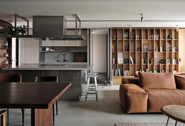 我们把目光转向四周,整个家的温暖被温暖的棕色和简约冷艳的灰色很好的平衡了。