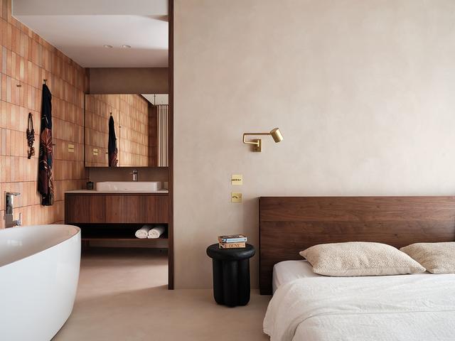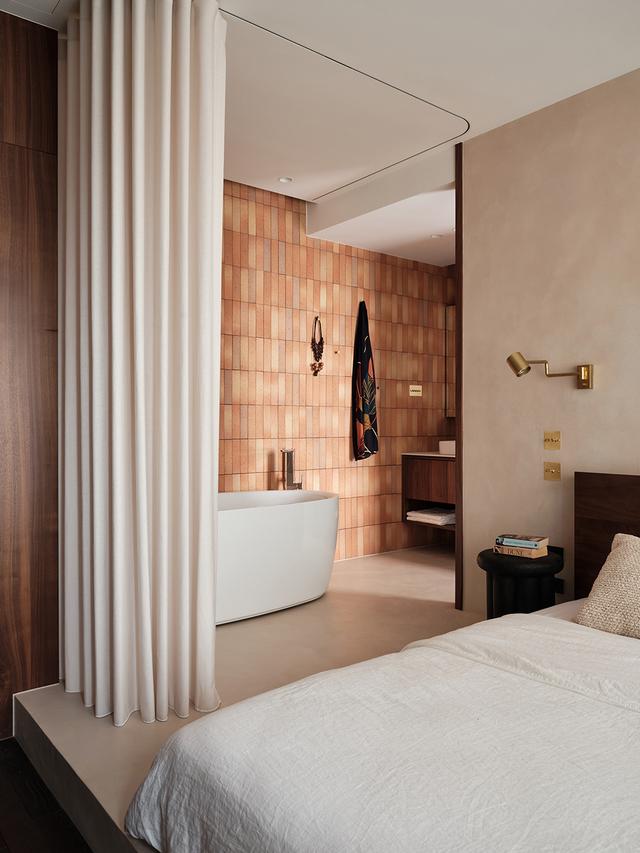 按照主人的要求,在床边放了一个浴缸,营造出精品酒店的感觉。