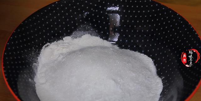 3,接着在碗里倒入30克粘米粉,再倒入60克的糯米粉,15克白糖,用90克左右的清水把粉搅拌均匀。