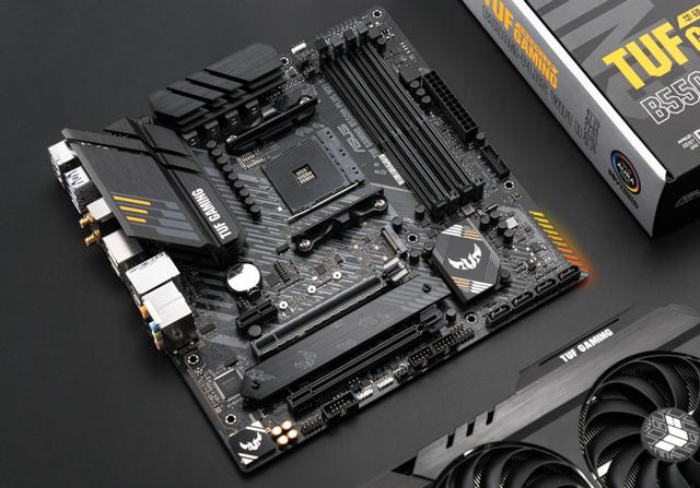 处理器方面,站长此次选择的是华硕TUF GAMING B550M-PLUS WIFI II重炮手。在市面上的一线品牌B550中,这款主板在用料、做工以及性能上表现依然非常突出。供电部分,主板采用的是8+2相供电设计,配以整合型高效解决方案,配以DIGI+数字供电控制、TUF电感和电容、20zPCB、特制实心结构的ProCoolⅡ高强度供电接口等配置,可以为处理器提供更好的供电效率。