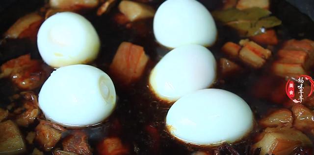 5、这个时候肉也炖好了,虽然已经软烂了,但是还不够入味,接下来我们把肉和汤全部倒入到锅里面,加入一些煮好的鸡蛋或者豆干,然后中火再煮20分钟。让调料的味道完全融入到肉里面。
