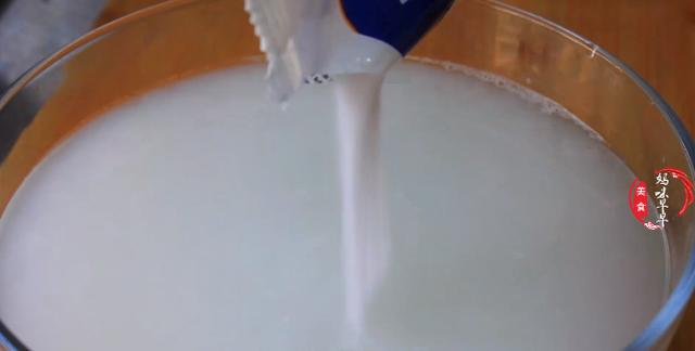 3,然后把淘米水倒入另一个盆子,加入半袋子食盐,再加入两勺白糖,盐的量根据自己腌菜多少决定,略咸就行,搅拌均匀后放凉备用。