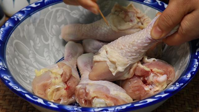 第一步、洗净的鸡腿咱们先用牙签给它做个针灸,每个部位都要扎透,这样鸡腿吃着才够入味。