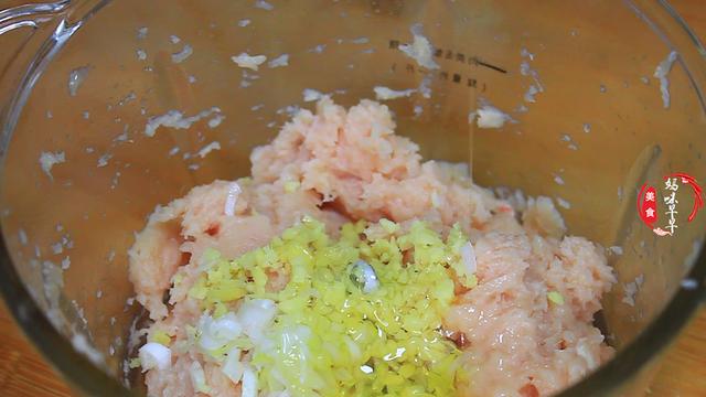 1,鸡胸肉洗净后先切成小块,切好后放入料理机里面打成肉泥,打好后加入葱姜末,打入一个鸡蛋,加入一勺盐,一勺胡椒粉,一勺玉米淀粉,顺着一个方向搅拌上劲儿。
