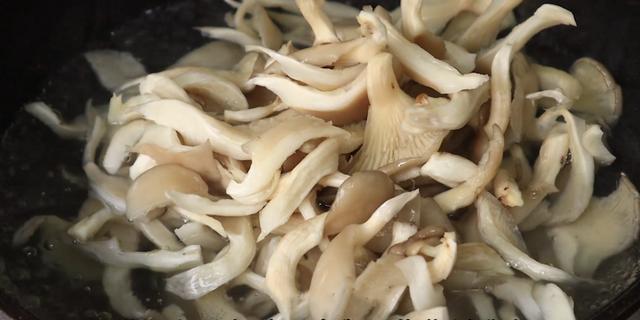 3、这个时候蘑菇也浸泡好了,我们冲洗干净,然后将蘑菇撕成小朵,锅里水开之后,咱们把蘑菇倒进去,差不多煮上2-3分钟就可以了。时间到了后我们把蘑菇捞出来放入清水过凉。