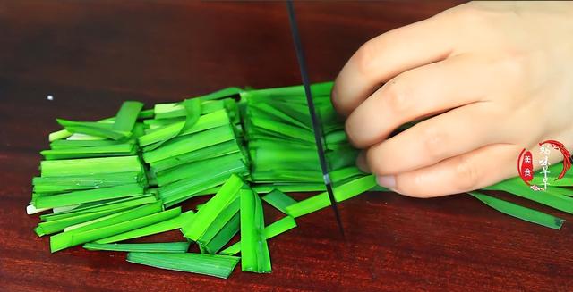 2,准备小葱先拍一拍,然后将小葱切成小段备用,准备稍微剁一些大蒜,先给它拍碎,然后再剁成蒜末,一小把韭菜洗净切成小段备用。