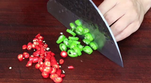 2、接着咱们准备多一些大蒜,切碎然后再剁成蒜末,剁好后装碗备用,再准备一些小米椒和绿椒切成圈备用,小葱切成葱花备用。