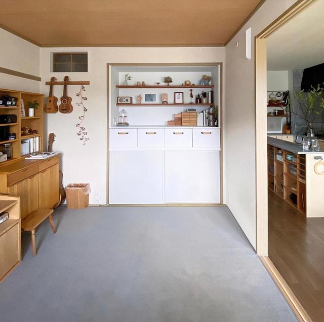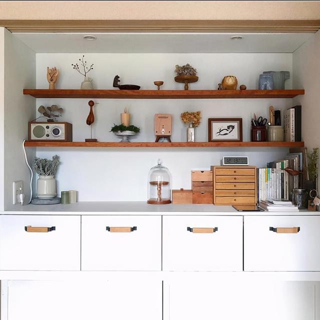 这里有一个干净整洁的房间。作为一个称职的日本妻子,她的储物技术是一流的。白色小柜子不仅漂亮,还能存放很多东西。生活真的是很精致的日用品。