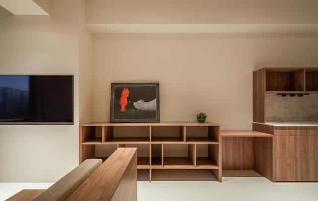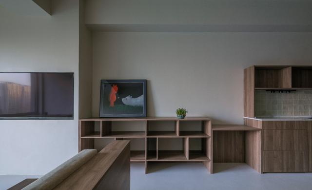 有了高台面的书柜和橱柜,整个功能区有了最舒适的居住氛围。
