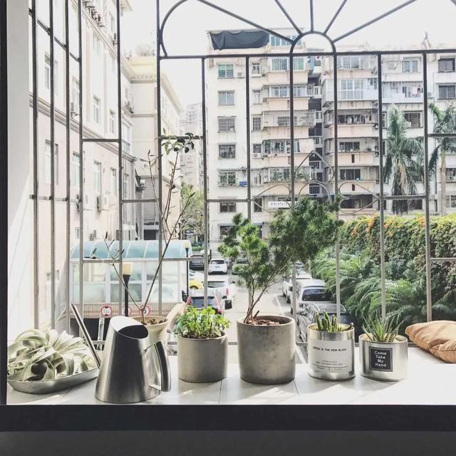 阳台的小角落,用新鲜的绿色植物点缀着空间。几个颜色搭配起来,看起来清新养眼。
