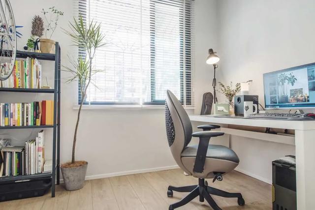 窗台种着花草,阳光和绿植的陪伴让书房充满了生机。
