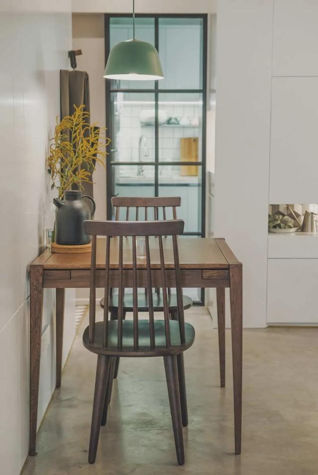餐厅简单实用,1.3m长的可伸缩餐桌,可以满足小型家庭聚餐的需求。
