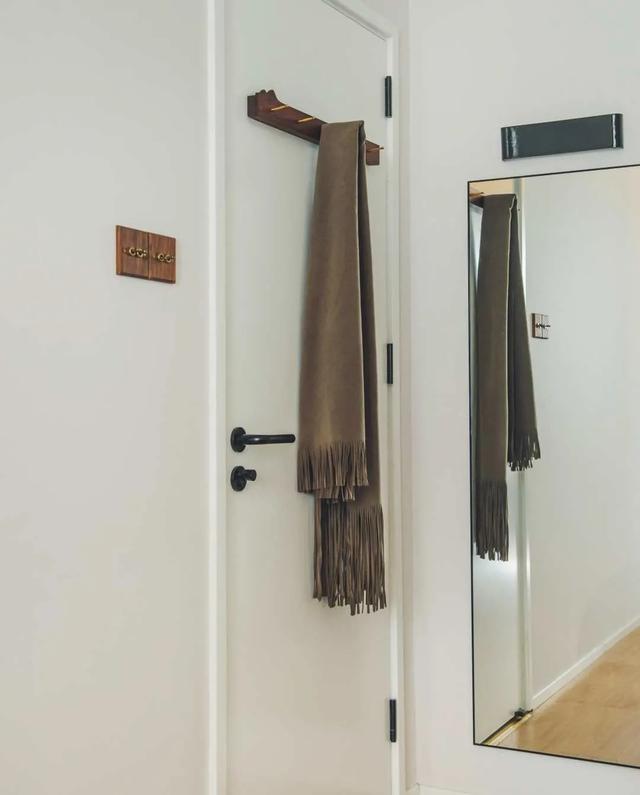 梳妆镜隐藏在门后,同时安装挂钩,最大化空间价值。