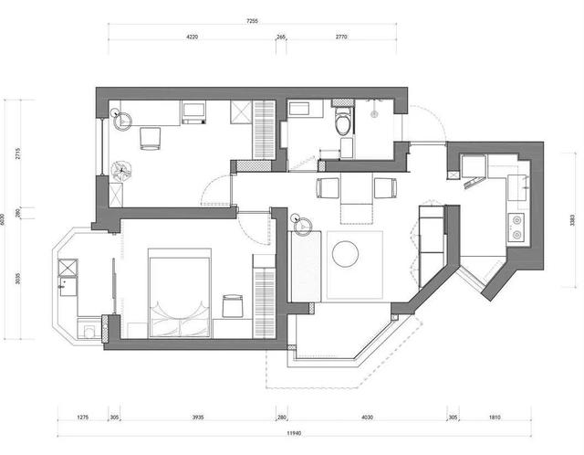 设计师几乎保留了原来的图案,只做了一些小改动。改变次卧的开间方向,去掉卫生间的隔断墙,优化空间。