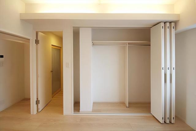 根据自己的喜好,外面安装推拉门或者折叠门。这两种门比平板门用起来更方便。