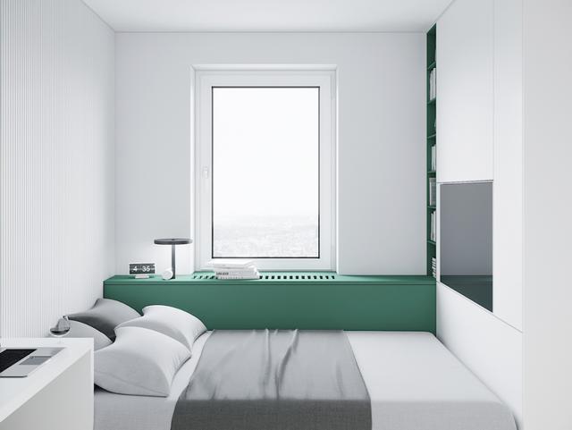 加宽的窗台也被用作床头柜。