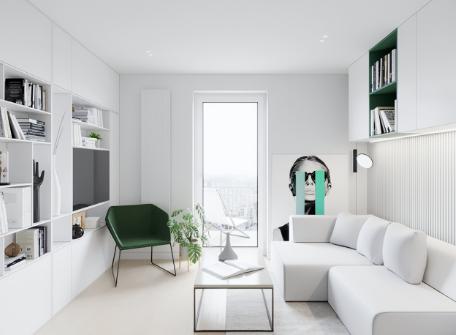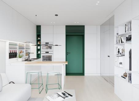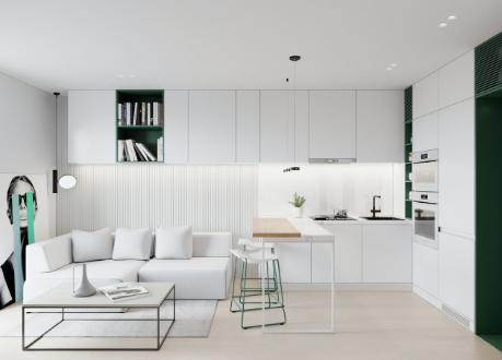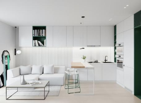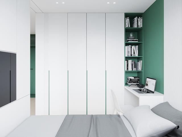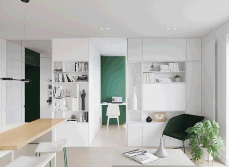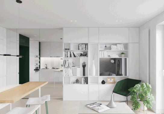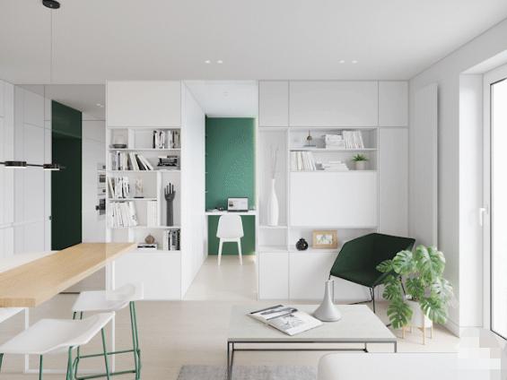 室内以白色调为主,绿色点缀为辅。