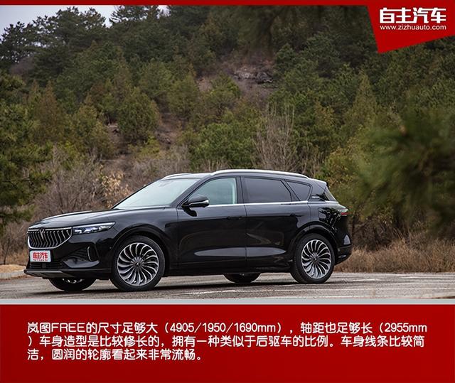 岚图FREE的尺寸足够大(4905/1950/1690mm),轴距也足够长(2955mm)车身造型是比较修长的,拥有一种类似于后驱车的比例。车身线条比较简洁,圆润的轮廓看起来非常流畅。