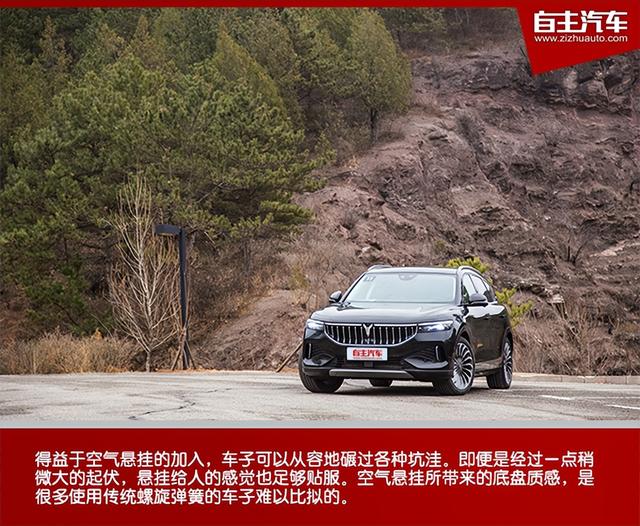 得益于空气悬挂的加入,车子可以从容地碾过各种坑洼。即便是经过一点稍微大的起伏,悬挂给人的感觉也足够贴服。空气悬挂所带来的底盘质感,是很多使用传统螺旋弹簧的车子难以比拟的。